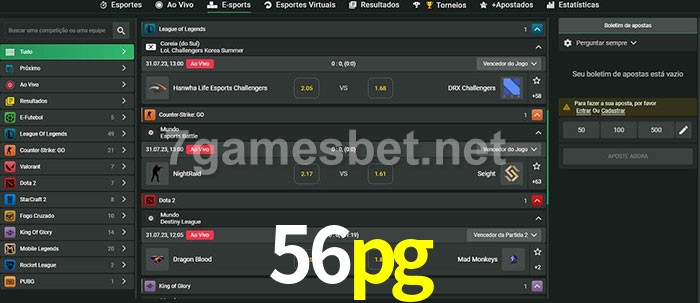 A aposta 56pg oferece aos jogadores a experiência mais conveniente de apostas em eSports!